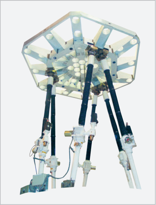 應(yīng)用圖例: VERTEX 天線技術(shù)有限公司射電天文接收器并聯(lián)運動驅(qū)動系統(tǒng), 由6根HSE高性能蝸桿絲杠升降機組成,升降高度3500mm。該系統(tǒng)用于同一平臺上 數(shù)個射電望遠鏡的定位。